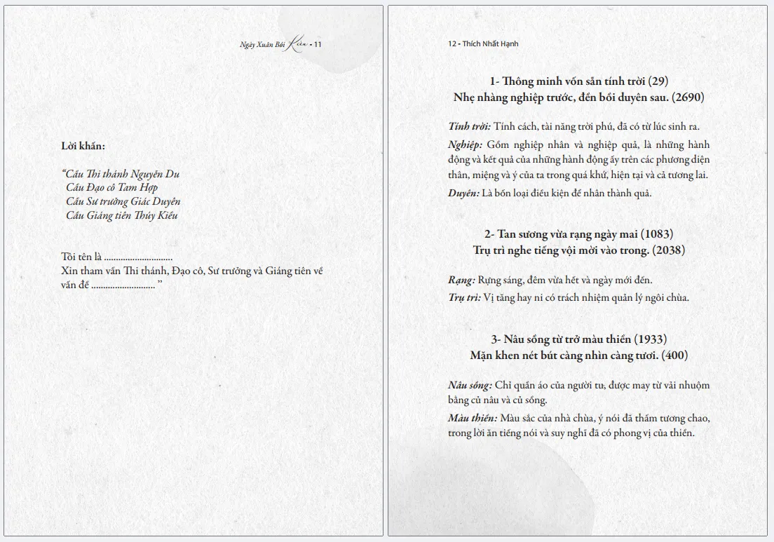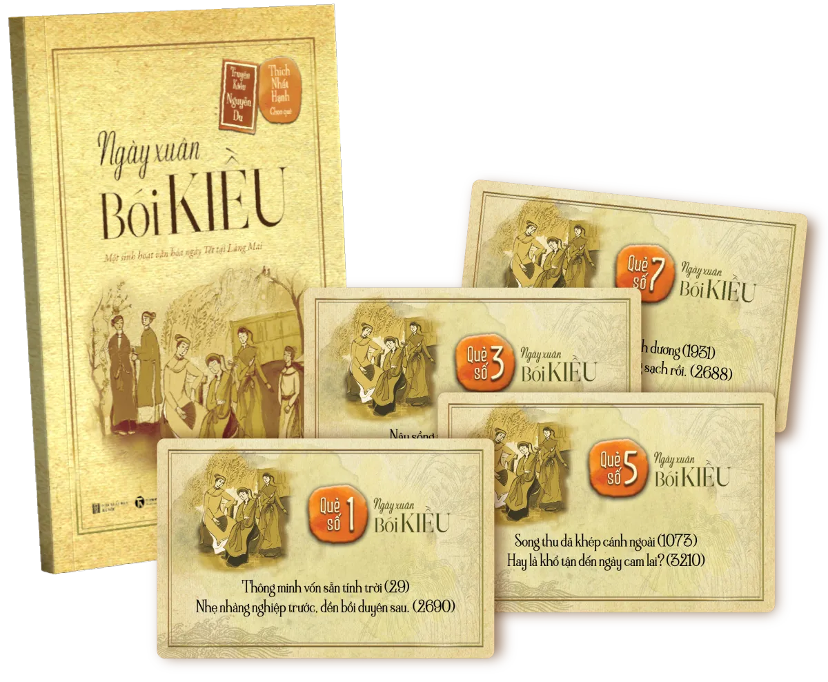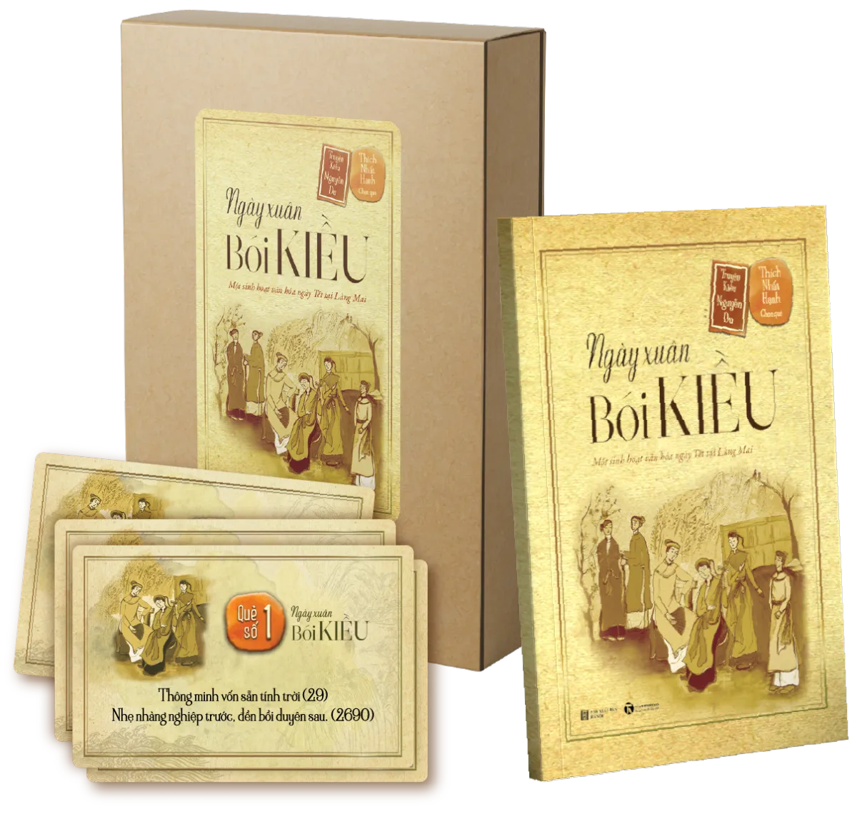 Bộ thẻ “Ngày xuân Bói Kiều” kèm sách hướng dẫn là một nghi thức nhỏ: rút thẻ – đọc chậm – lắng nghe… để mình biết cách sống và tu tập thế nào cho hạnh phúc trong năm mới.