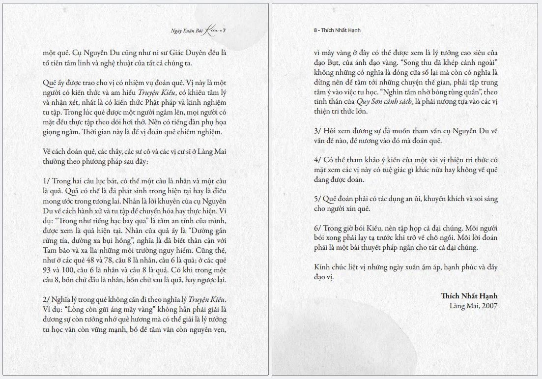 Bói Kiều tại Làng Mai được làm mới như một sinh hoạt văn hoá ngày Tết, giàu tính nuôi dưỡng và chuyển hoá.