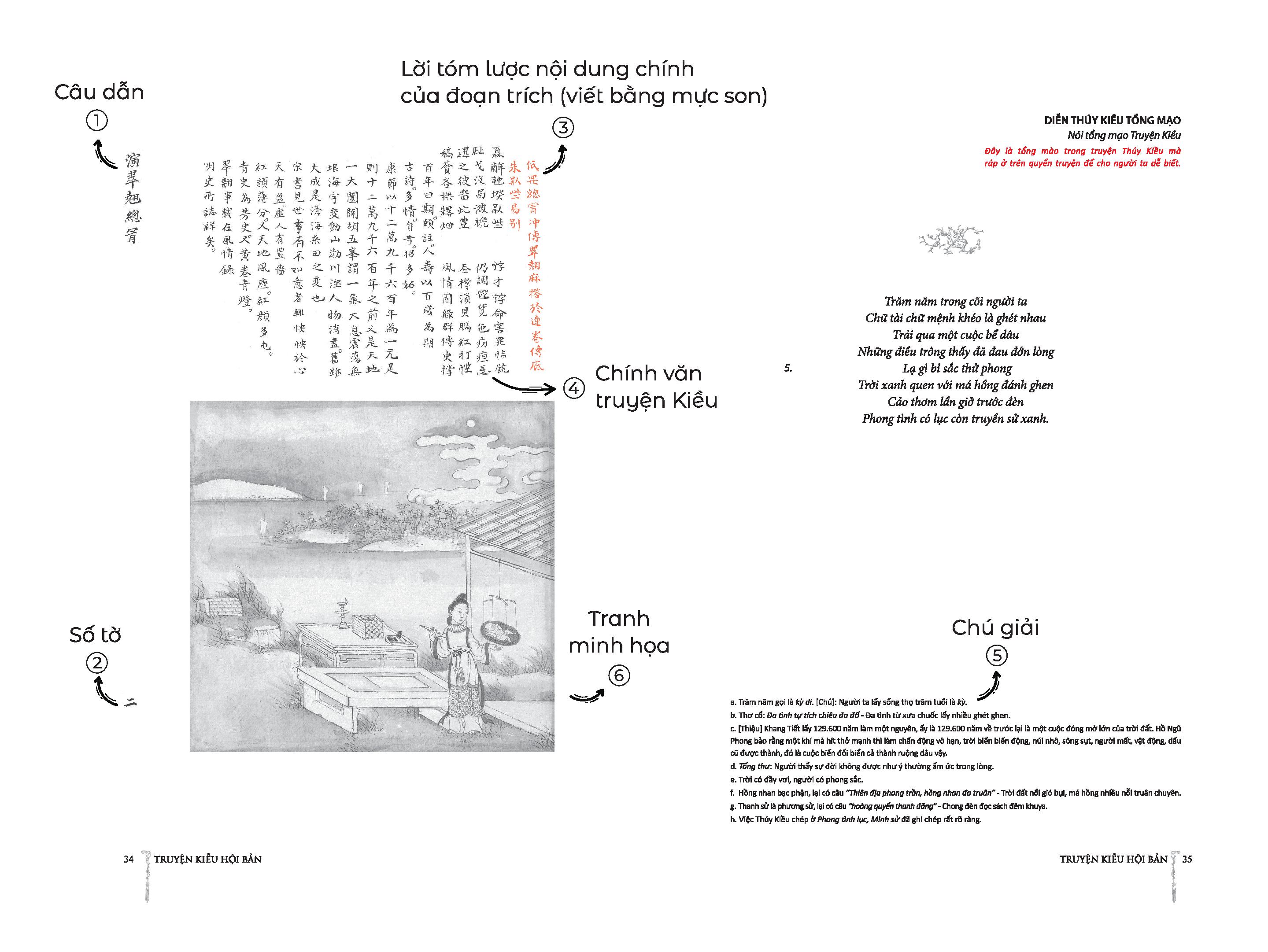 Ấn bản Truyện Kiều hội bản (Truyện Kiều có tranh minh họa) được dựng lại dựa trên ấn bản Truyện Kiều hội bản 1894 – đây là ấn bản được lưu trữ tại Thư viện Anh Quốc và có giả thiết cho rằng do vua Tự Đức thực hiện – dòng chữ đỏ thể hiện phần tóm lược có thể là “châu phê” của vua Tự Đức.